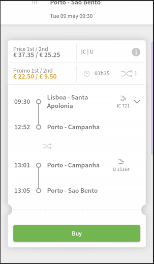 정확하게는 리스본 산타 아폴로니아 ( Lisbon Santa Apolónia )역에서 포르투 상 벤투 (Porto São Bento) 역으로 이동입니다.