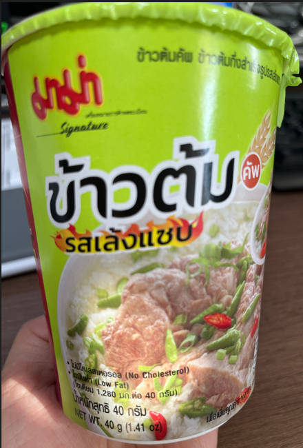 번역기로는 '카오톰 컵 인스턴트 라이스 수프 렝 매운맛'라고 하네요.