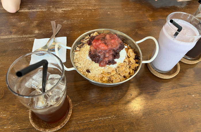 식사 후 체크인 전에 숙소 주인께서 운영하는 찰리하우스 커피숍에서 음료와 팥빙수를 먹었습니다.