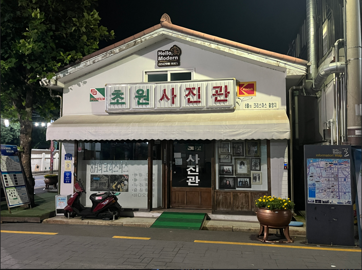 저녁 9 시 이후에는 지나다니는 사람도 별로 없고 살짝 무서웠지만 사람들이 가득했던 '초원 사진관'을 제대로 찍을 수 있었습니다.