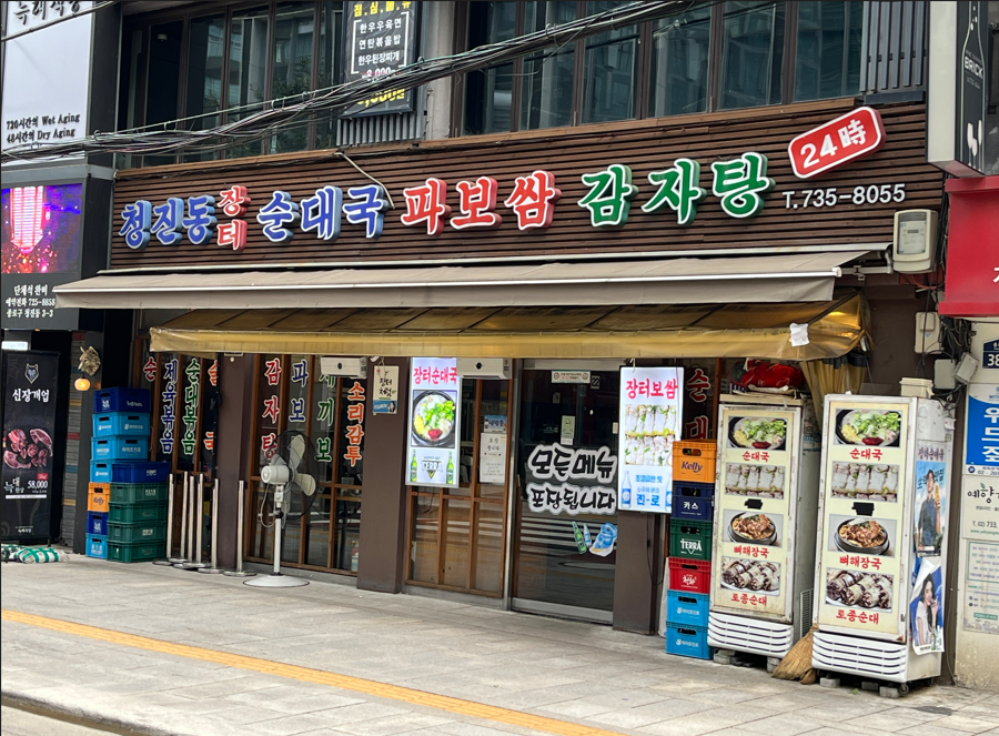 '제육볶음'이 있어 물어보니 점심 때는 식사류 (순대국과 뼈해장국) 만 가능하다고 합니다