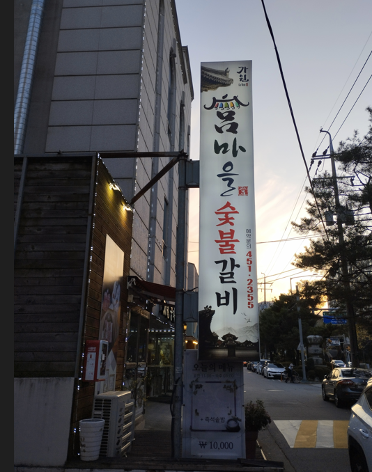 6-7분 정도 걸으면 '가원 마을 숯불갈비' 간판이 보입니다.