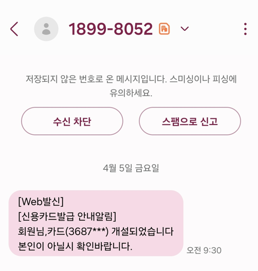 '국민건강 검사 보험 통보문'을 사칭한 공격도 있었는데 카드 발급을 가장한 공격이라 계속 새로운 방법으로 시도하고 있네요.