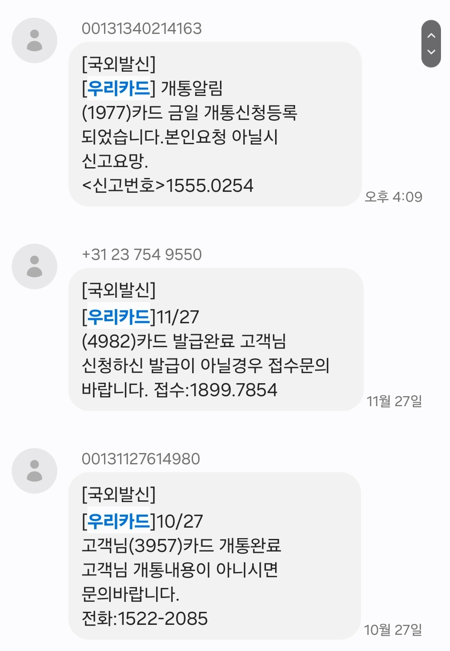 롯데카드에서 외국에서 문자보낼 일이 없죠.