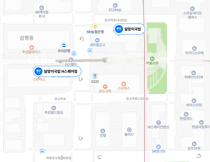 네이버 지도에는 달맞이국밥이 삼환하이펙스라고 뜹니다.