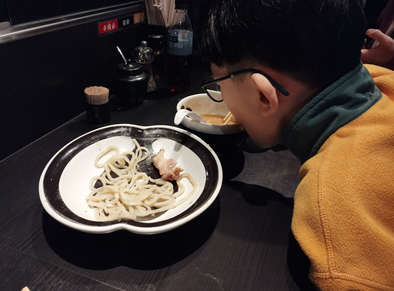 아들은 화이트 츠케멘을 시켰습니다. 안 맵고 찍어 먹는 라면입니다.