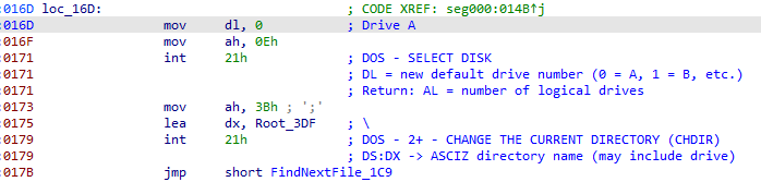 A 드라이브에서 COM 파일을 찾아 감염시킵니다.