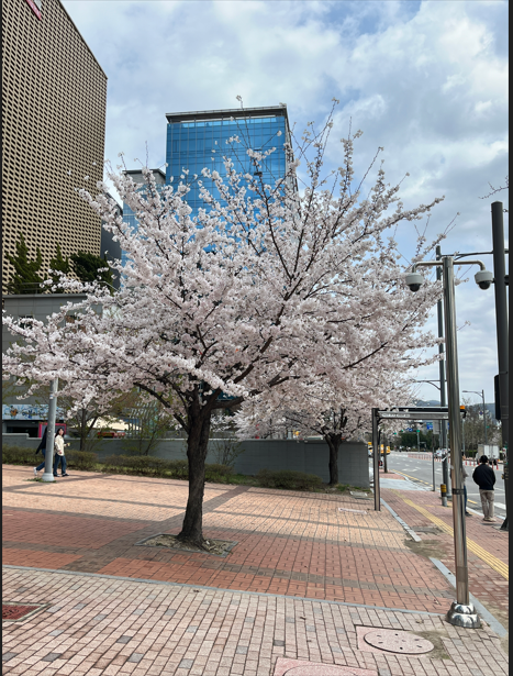 판교에서 W스퀘어쪽에 있는 나무가 가장 빨리 꽃이 핍니니다.