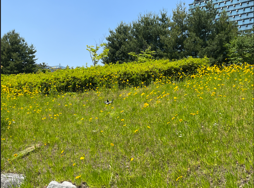 5월에는 노란 꽃 (아마 금계국)이 쫙 펴있어 예쁩니다.