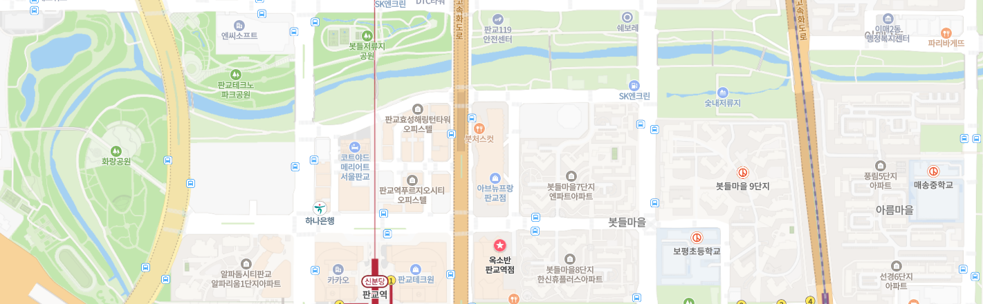 판교역 북쪽 판교 테크노밸리 가는 길에 개천과 여러 공원이 있고 주변에 꽃길이 있습니다.