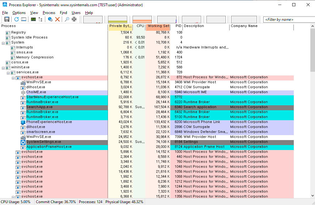 Process Explorer은 프로세스 상태를 보여주는 프로그램입니다.