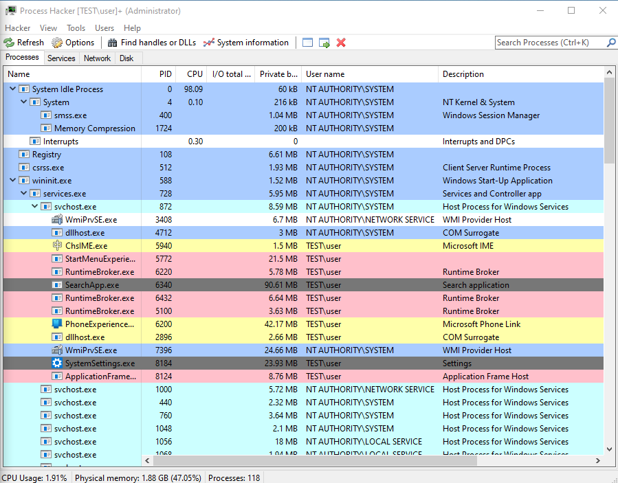악성코드 분석용은 프로세스 익스플로러보다 프로세스 해커를 더 즐겨 사용합니다.