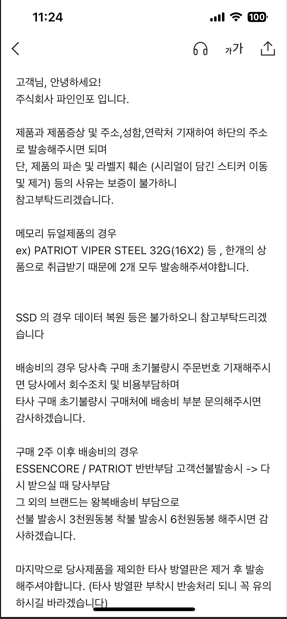 ADATA NVME 512 GB 불량 교체 ... 3년 이내 무상 교환