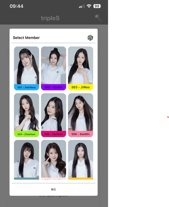 응원봉 아이콘을 누르면 멤버별 색깔로 바꿀 수 있습니다.