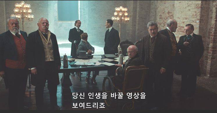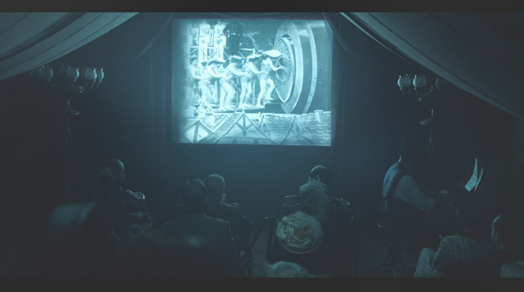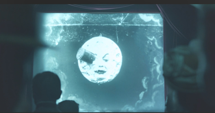 상영되는 영화는 1902년 작 달 세계 여행 (Le Yoyage dans la Lune)입니다.