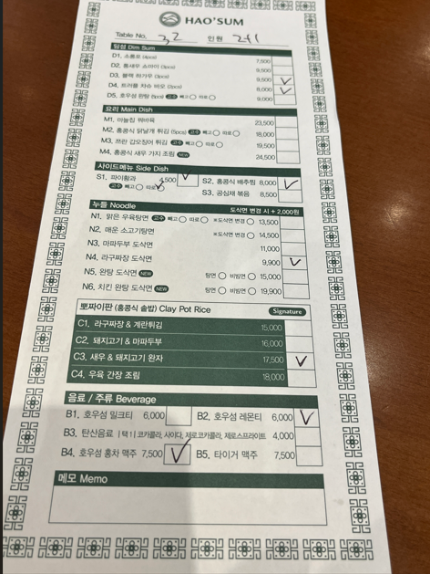 종이에 메뉴를 씁니다. 베트남에서도 이렇게 주문해서 뭔가 홍콩식일까요 ?