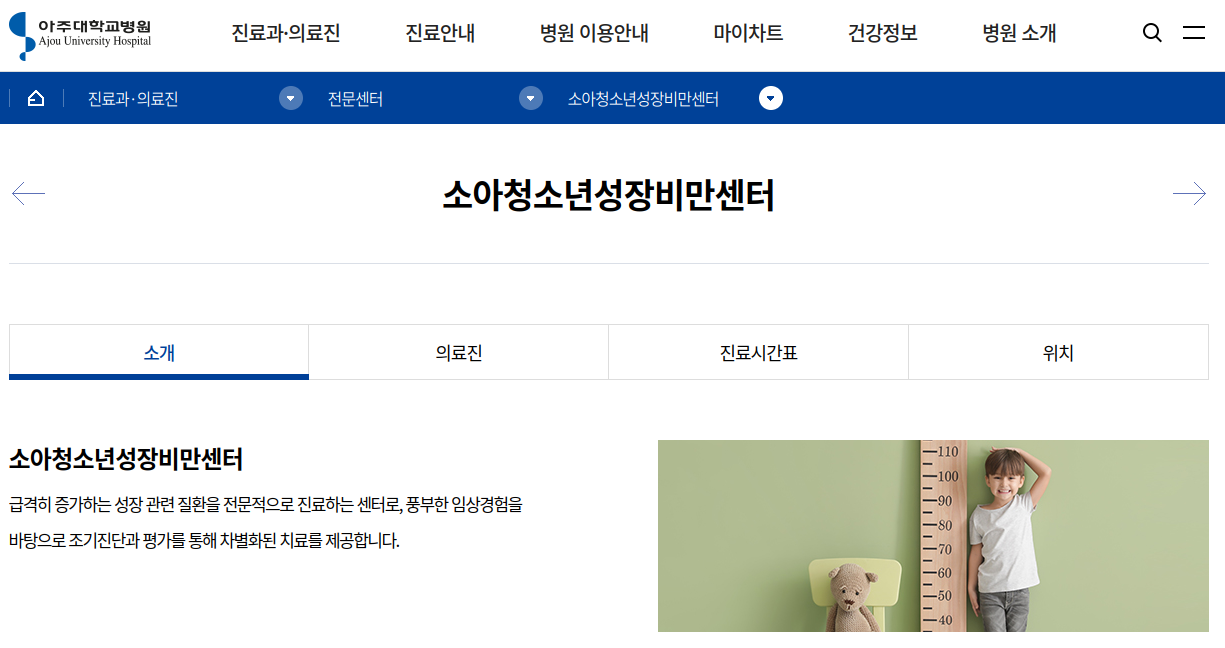 우선 아주대학교병원 소아청소년성장비만센터 초진을 시도했습니다.