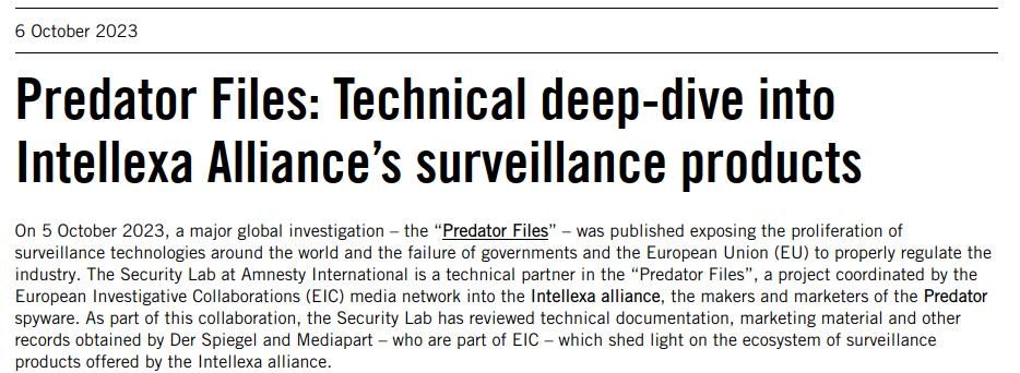 Predator Files: Technical deep-dive into Intellexa Alliance's surveillance products - Amnesty International Security Lab