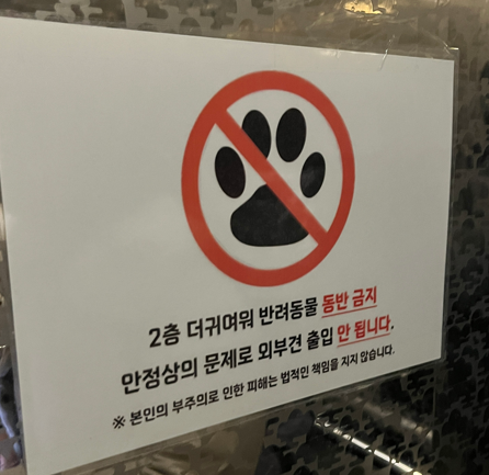 2층에 위치하는데 반려동물 동반 금지라고 합니다.