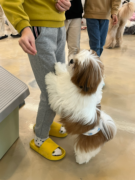 구매한 먹을게 다 떨어지면 개들과 함께 할 수 없어서, 직원이 보고 먹을걸 나눠줍니다.