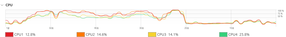 메모리도 일정 기간 100%를 찍었습니다.