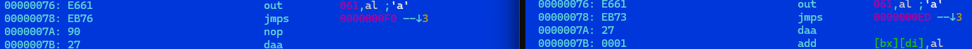 JMP 가 EBh가 아닌 E9h가 사용되어 일부 코드가 뒤로 밀렸습니다.