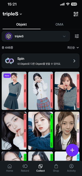 cosmo 앱에서 tripleS 오브젝트 가격은 장 당 4,400 원입니다.3개 11,000 원, 6개 22,000 원, 11개 39,000 원으로 할인됩니다. 앱에서 구매할 때는 애플이나 구글에 수수료를 지불해야 합니다.그래서 좀 더 싸