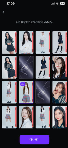 Spin을 선택하면 보유하고 있는 오브젝트를 선택할 수 있습니다.