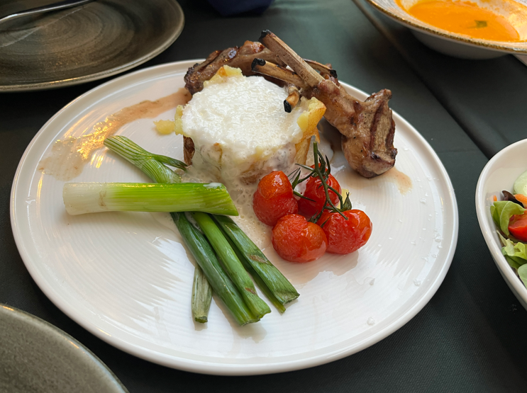 볶은 야채 또는 민트와 피스타치오를 곁들인 양고기 스테이크 요리
