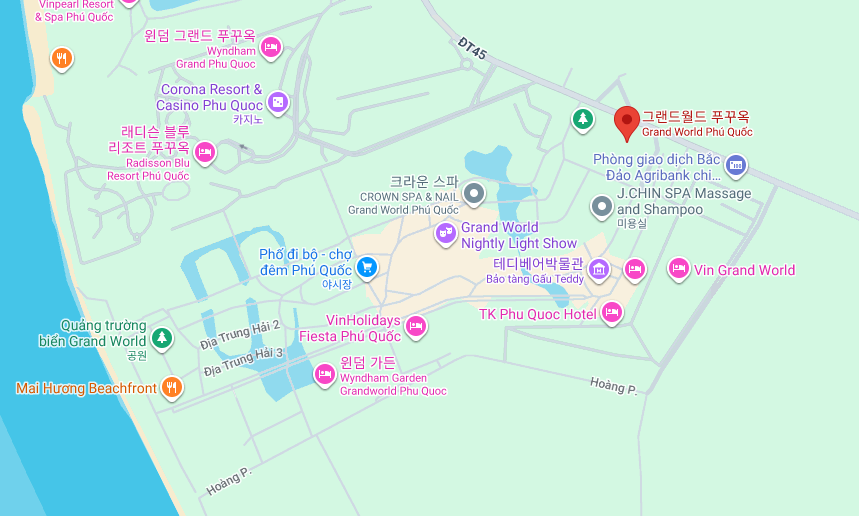 푸꾸옥 그랜드월드는 푸꾸옥 섬 북쪽에 위치한 쇼핑, 식당이 몰려있는 곳입니다.