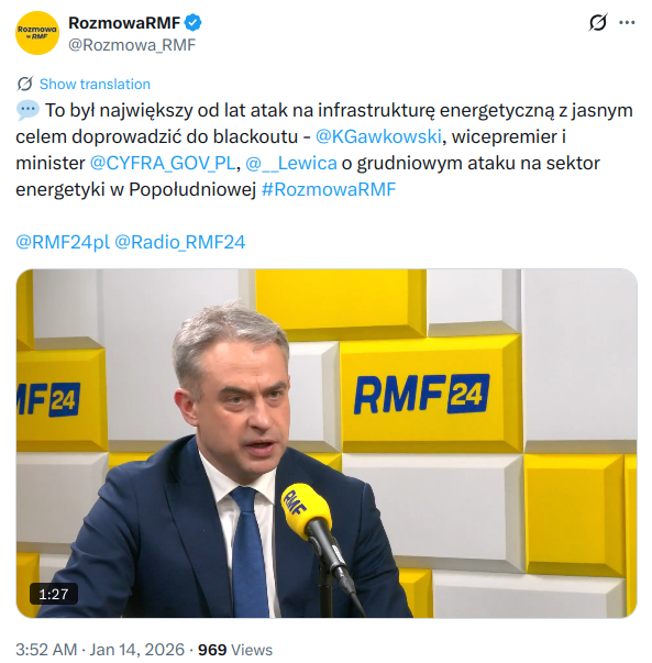폴란드 정부는 2025년 12월 폴란드 전력망에 사이버공격이 있었다고 밝혔습니다.