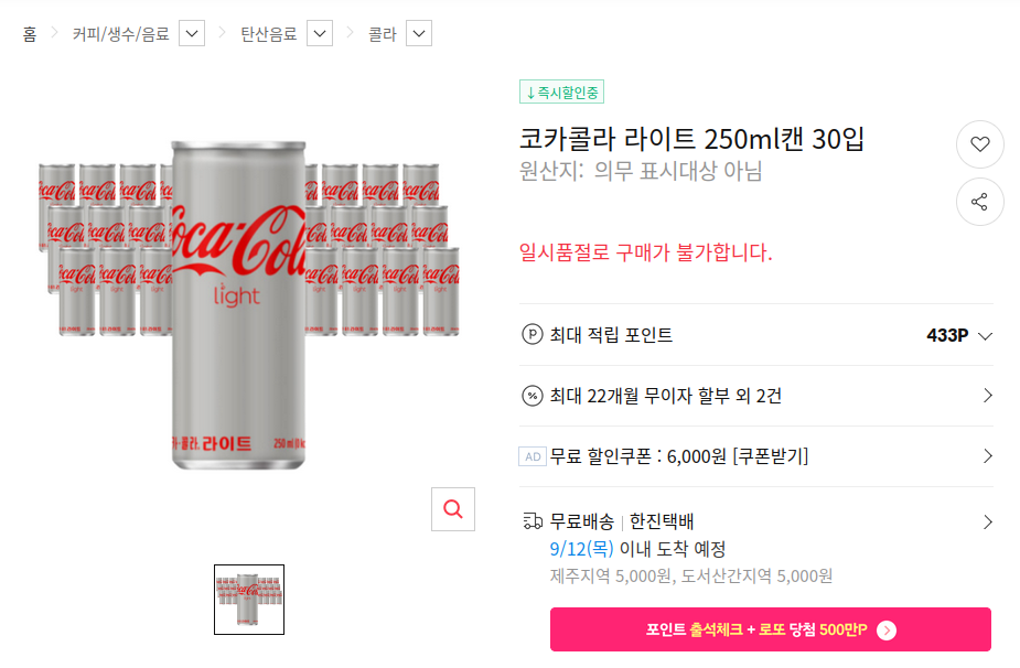 코카콜라 라이트를 즐겨 마십니다. 적어도 2012년부터 마셨으니 12년이 넘었습니다.당시에는 AK백화점 식품관에만 있어 수원역에 갈 때마다 1-2개씩 사왔습니다.이후 인터넷에서 구매할 수 있는걸 발견하고 한달 마다 박스 째로 샀습니다. * 코카콜라 라이트 단종 ? 코카콜라 제로도 종종 마시지만, 밍밍한(?) 코카콜라 라이트를 제일 좋아합니다펩시 콜라 제로가 인기 있지만 저에게는 맛있다는 생각이 안들더군요. 코카콜라 라이트는 많이 마시면 뭔가 화학약품(?) 맛이 느껴집니다. 그래도 코카콜라 라이트가 좋습니다. 2024년 9월 초 집에 있던 코카콜라 라이트가 다 떨어져 주문하려고 쇼핑몰을 뒤져봅니다.이상하게 2만 3천 - 4천 원에 살 수 있었는데 물량이 안나옵니다. 코카콜라 가격이 올랐다고 하더니 가격 올..